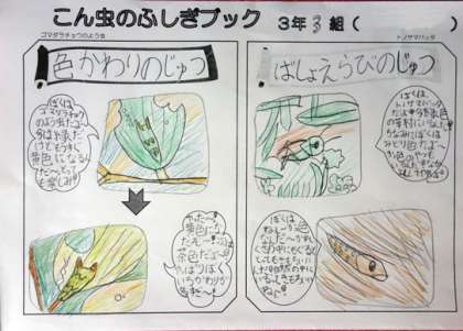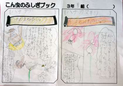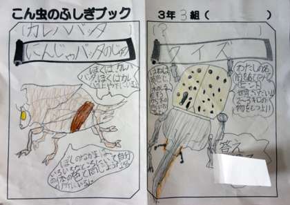 先日、3年3組の国語の授業の様子をお伝えしましたが、ついに出来上がりました、『こん虫のふしぎブック』!