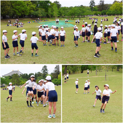 食後、そのまま春日野園地で遊びました。長なわ、けいどろ、ふえおになどなど。●●を踏んでしまったら、「ウンがつく」ということで。(笑)