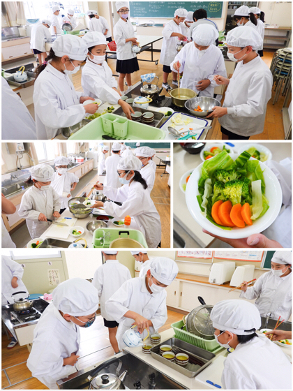 3,4時間目、家庭科室で調理実習をしていたのは5年3組の子どもたち。ゆで野菜サラダづくりにチャレンジしていました。