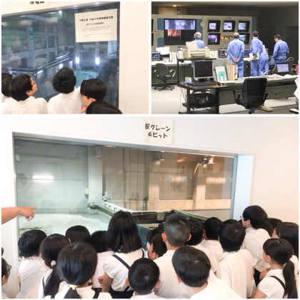 ごみピット・焼却炉・プラットホーム・中央制御室・蒸気タービン発電機などなど、じっくりと見せてもらいました。ごみの量、それをつかみとるクレーンバケットの大きさにビックリ! 百聞は一見にしかず。新たな発見がたくさんあったことでしょう。