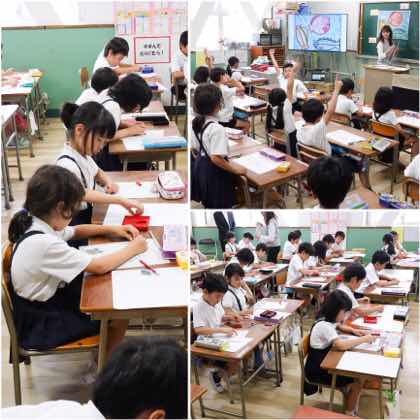 3時間目、算数の学習。魚の長さを調べる活動をしていました。