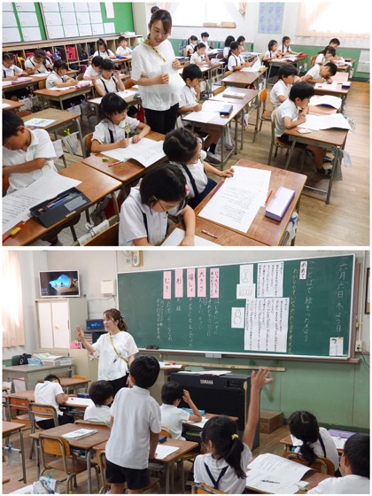 4時間目、国語の学習。「絵の描き方の説明の仕方」を考えていました。