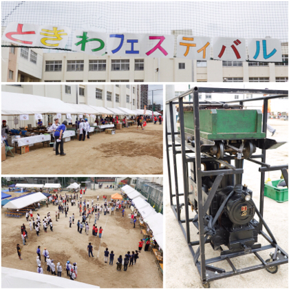 本日開催、第16回ときわフェスティバル! 朝早くから準備が始まっています。ぬかるんでいた運動場は、懸命の整備作業で、何とか歩ける状態になりました。