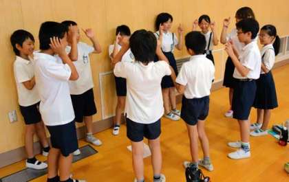 1時間目、林間学習の係ごとに集まって活動をしていました。