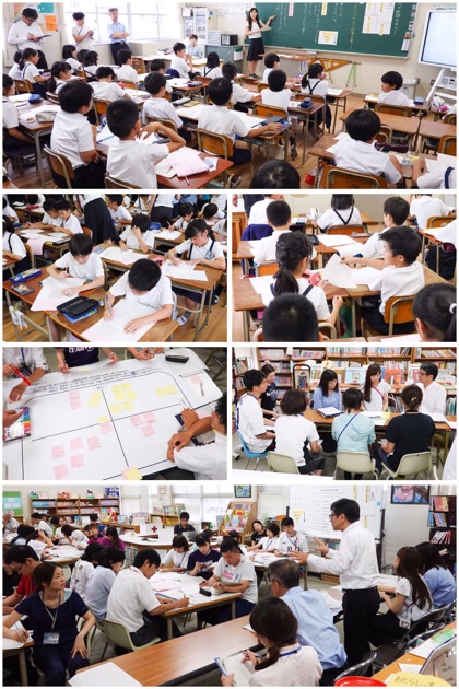 6時間目、4年5組で教員対象の参観授業(教員の研修)が行われました。他の学級は5時間授業で下校しましたが、4年5組だけ6時間目も授業を行いました。今年度の本校の研究教科である、国語科の授業です。