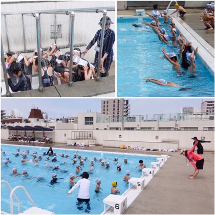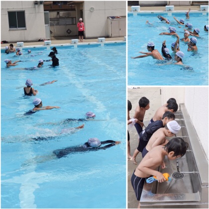 2時間目、1学期最後の水泳学習でした。6年生といっしょのプール開きから、およそひと月、小学校のプールにも慣れてきたようです。