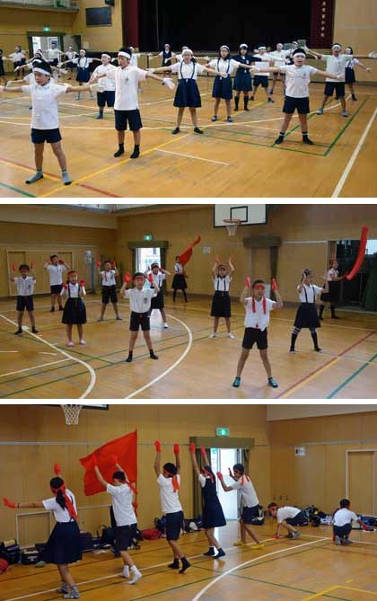 毎朝8時から練習している応援団。今日は、朝の応援を通して練習していました。