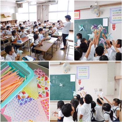 涼しげに回る風車。教室内が、いつもより涼しく感じられました!