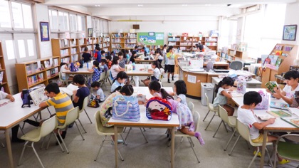 絵本の読み聞かせは、〜7月26日(金)まで、10:15〜と11:15〜の1日2回、本校2階のなかよし学習室でしています。児童のみなさん、ぜひ参加してみてくださいね。
