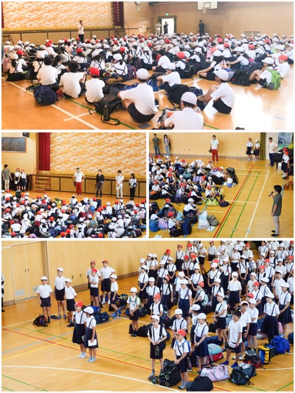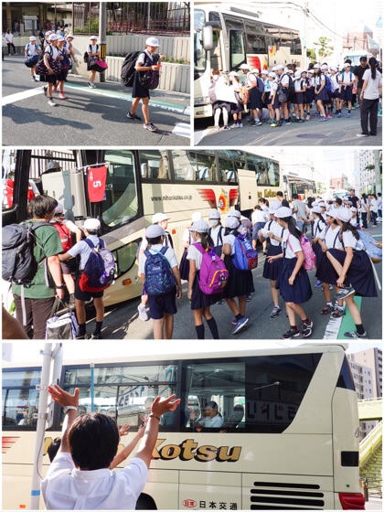 2泊3日の旅がいよいよスタートです! 講堂で出発式を行い、バス5台で予定どおり出発しました。保護者の皆様、たくさんのお見送り、ありがとうございます!
