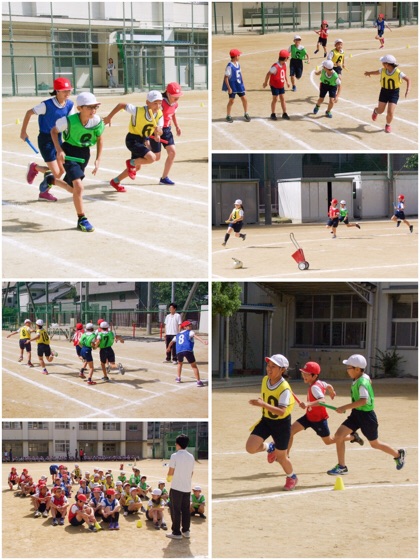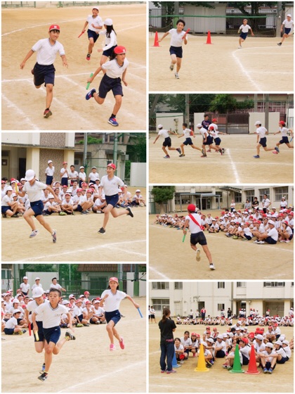 上の写真は、24日(火)の6年生のリレー練習の様子。トラックを使っての“実戦”です。