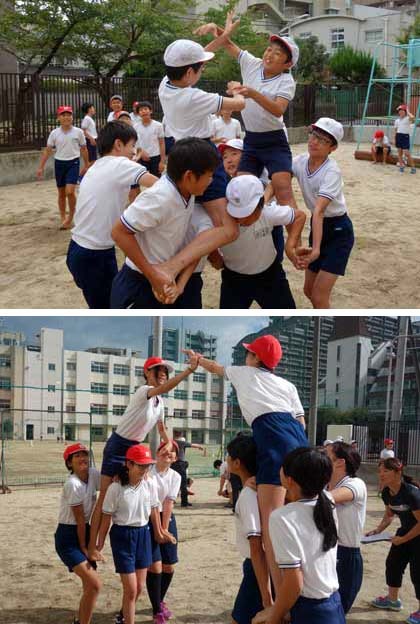 自分たちの演技がよくわかったのではないかと思います。位置やタイミング、形…。上映後、組体操の出来栄えを自己採点してみると、50%〜70%だと判断する子が多かったそうです。