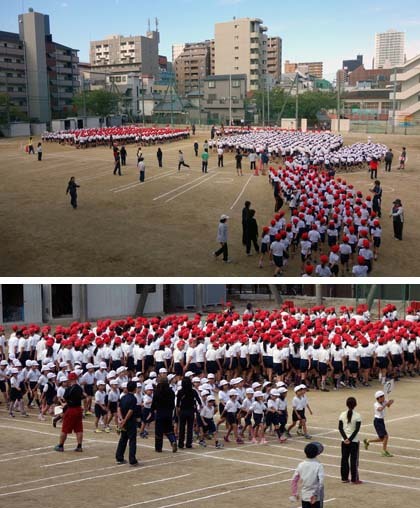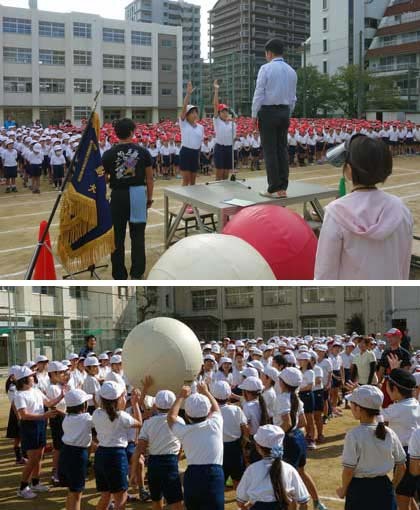 1時間目、運動会の全体練習が行われました。今日は入場行進〜開会式〜準備体操と、全校競技の大玉おくり「つなごう ときわの輪」の練習でした。