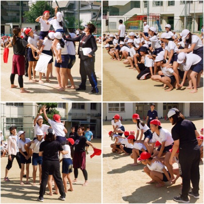 安全確保のため、態勢が崩れたときに先生が即カバーに入れるようにしています。