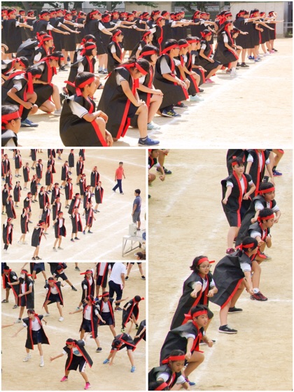 2時間目の騎馬戦に続いて、4時間目は団体演技の練習です。