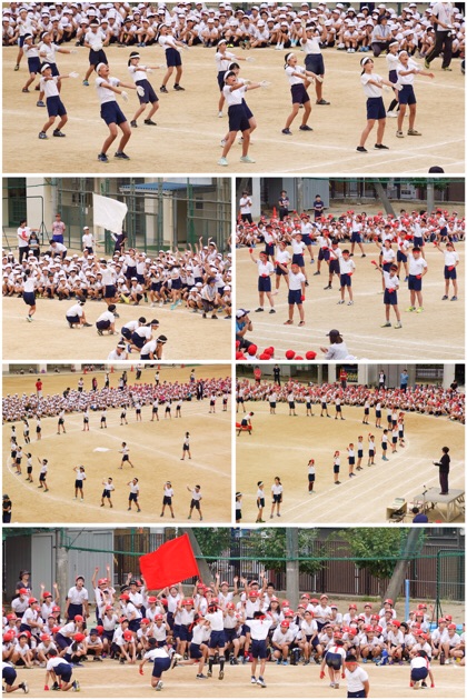 運動会の全体練習、2日目は「応援合戦」の練習がメインです。三三七拍子、エールの交換、応援歌、色づくし、ウェーブをみんなで練習しました。