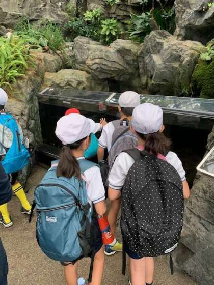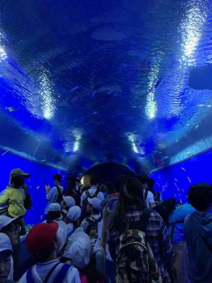 ついに、海遊館の中に入りました!ながーいエスカレーターを上がって。さあ、いよいよ海の生き物達とご対面!まずは水槽のトンネルです。