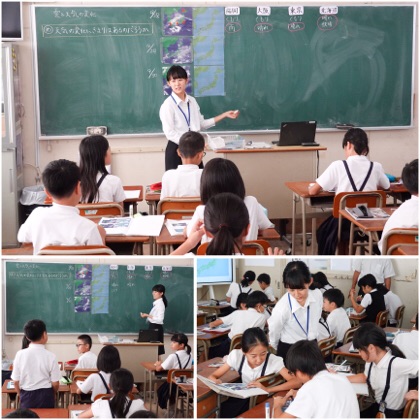 3時間目、理科の学習。雲の動きと天気の関係について学習していました。指導者は、教育実習生のN先生です。