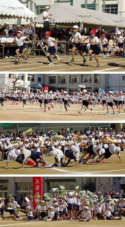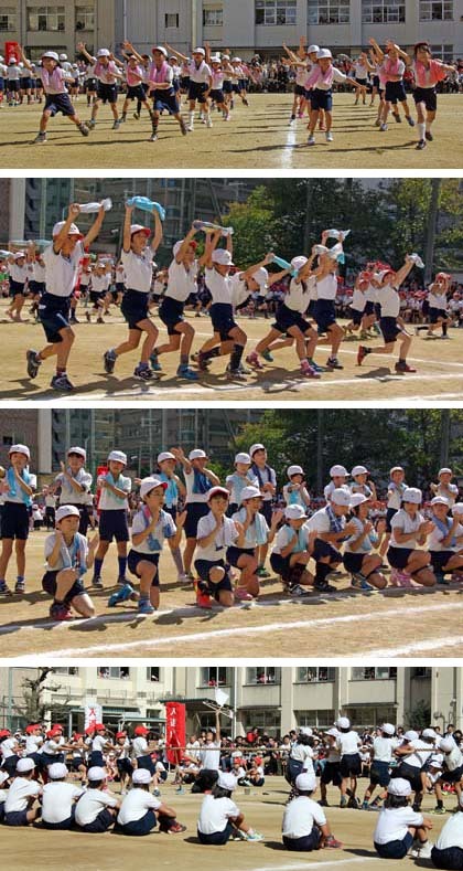 「DAN!RAN!!どっかん!!!」では、1曲目の途中で音楽が止まるアクシデントがありました。朝会台のM先生が「もう1回最初からおどれるかな?」と問いかけたとき、みんなが「うんっ!」「 おどるおどるっ!」ととびっきりの笑顔で応えてくれた場面は、今年の運動会の名場面の一つですね。