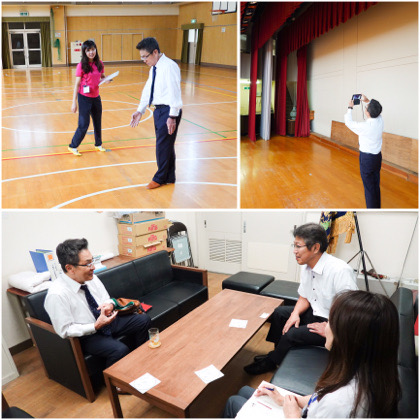 9月25日(水)の昼下がり、講堂で写真を撮ったり、校長室で校長先生・副校長先生とお話したりしている1人の紳士。ご存知の方もいらっしゃると思います、梅田 隆司(うめだ たかし)先生です。その方面では、かなり有名な方なのですが、なぜ常盤小学校へ来られたのか!?