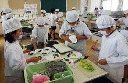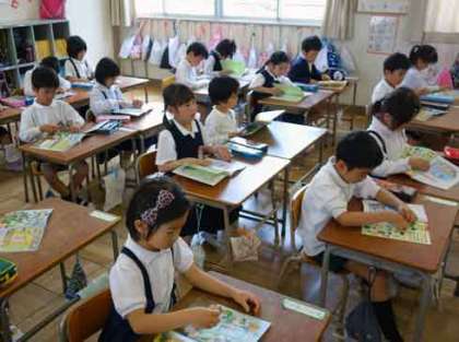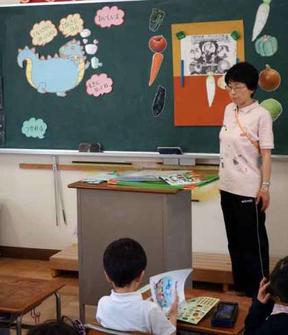1年4組、3組で栄養の勉強をしました。テーマは“野菜”です。栄養教諭のT先生が、カラフルな掲示物を使って、野菜についてのあれこれを教えてくれました。どの学級にも、「緑のものが苦手…。」という児童がちらほらいます。「栄養たくさんの野菜を好きになってね。野菜が苦手な子も、少しずつでも食べられるようになってね。」とT先生は締めくくっていました。他のクラスも、今週中に勉強をします。