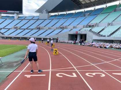 12日(火)に長居陸上競技場で6年生のスポーツ交歓会が行われました。阿倍野区の小学校10校が参加して、総勢1000人近くの児童が球技やリレーなどのスポーツを楽しみました!常盤小学校のみんなも他校の友達と一緒に一生懸命頑張りました!写真は当日実施した、サッカー・100m走・リレー・800mジョギングの様子です。6年生のみなさん、いっぱい体を動かして疲れたと思いますが、とても充実した1日になりましたね!
