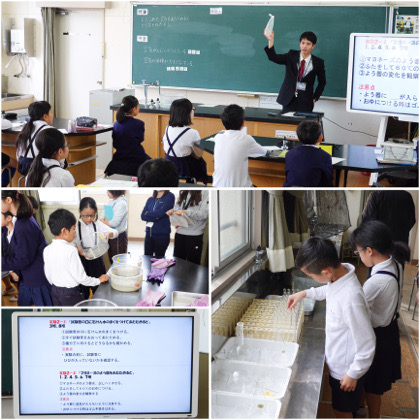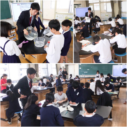2時間目、理科の学習。4年2組の子どもたちが、実験の準備をしていました。