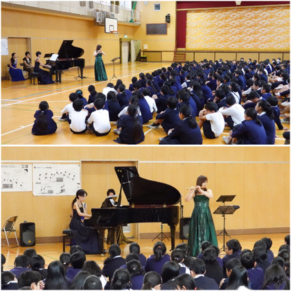 3時間目、6年生を対象に音楽鑑賞会が行われました。これは、阿倍野区「プロフェッショナルに出会う! 音楽体感」事業として行われたものです。