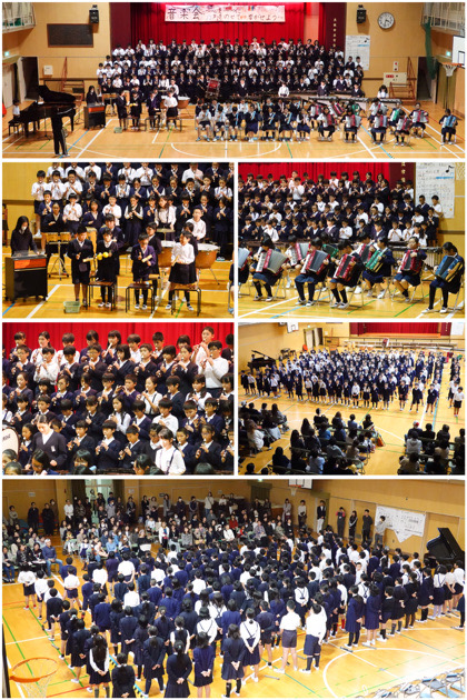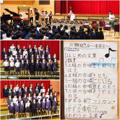 6時間目、学年子ども会主催の音楽会が行われました。各クラスごとの発表(合唱)と、学年全員で行う発表(合奏と合唱)の2本立てです。