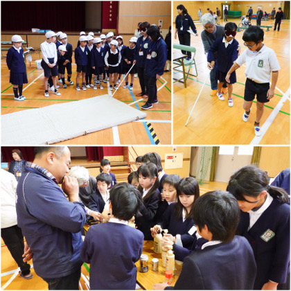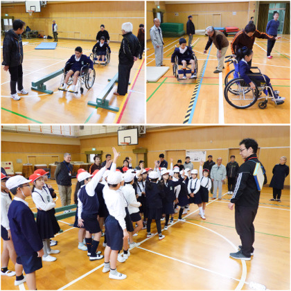 28日(木)と29日(金)の2日間、3年生対象に、講堂で車いす&アイマスク体験が行われました。体験は、各クラス1時間ずつで、1クラスを2グループに分けて、ローテーションで活動しました。