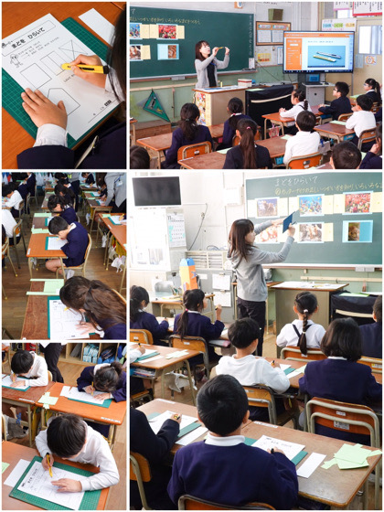 開く窓を作って表現する「まどをひらいて」という単元の学習。窓を作るには、カッターで切り込みを入れる必要があるので、まずはカッターの使い方を学ぼうというわけです。