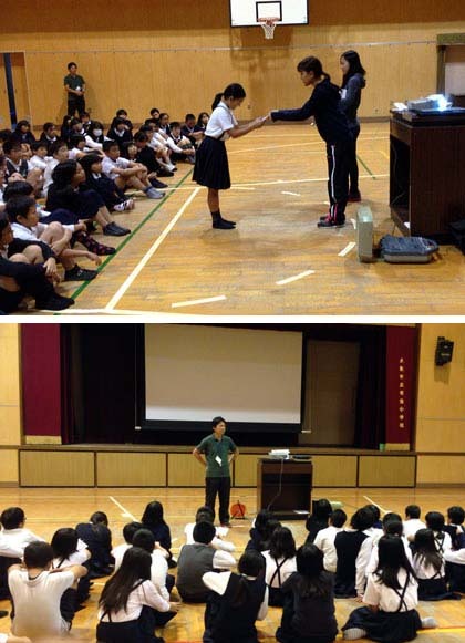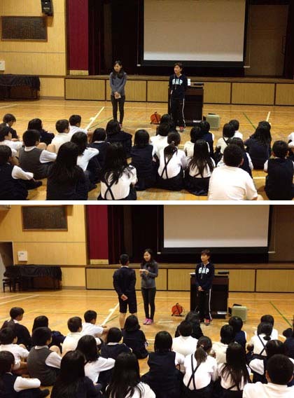 放課後、講堂で応援団の解団式が行われました。応援団担当の4人の先生方から一言ずつメッセージがあり、全員に「応援団認定証」が手渡され、活動をまとめたフォトムービーが上映されました。