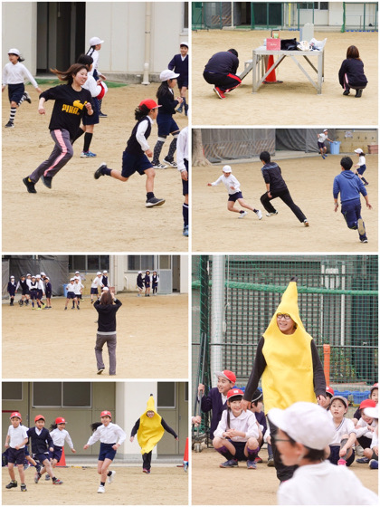 3時間目、運動場で「学年お楽しみ会」をしていたのは3年生です。クラス対抗スポーツ大会のような感じですね。