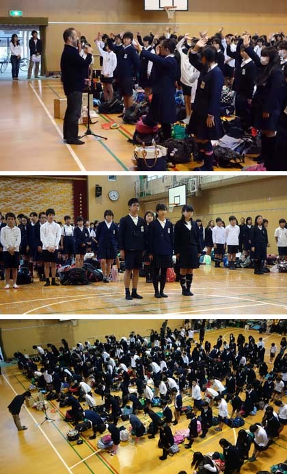 講堂で行われた帰校式。児童代表のあいさつでは、1泊2日の思い出のほんの一部が語られていましたが、そのままみやげ話を聞きたい気持ちになりました。