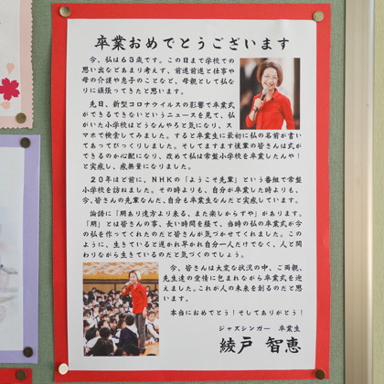 6年生のみなさん、卒業おめでとう! 中学校での活躍を祈っていますよ!