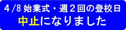 明日(4/8)予定されていた2〜6年生の始業式と、週2回設定していた各学年の登校日は、「新型コロナウイルス感染症の拡大予防」と「緊急事態宣言発令(予定)」にかかる対応で中止になりました。