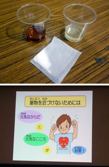 「薬物の恐ろしさ」は、ビデオも見ながらの学習でした。ラットに大麻を…という実験の映像は、麻薬の恐ろしさを感じるのに十分でした。最近話題になっている「危険ドラッグ」のことも出てきました。