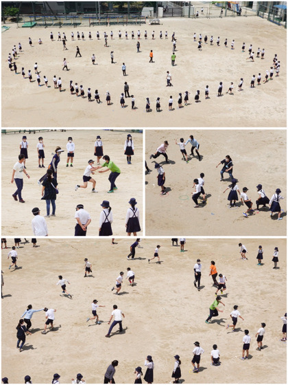 運動場にできた、大きな輪。輪の作り手は、4年生です。
