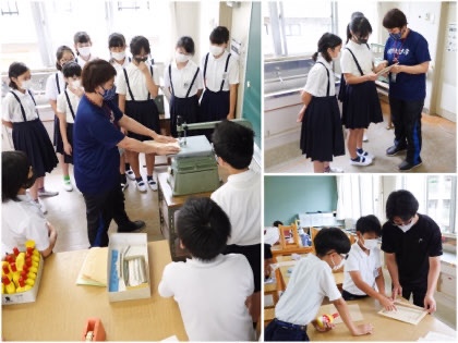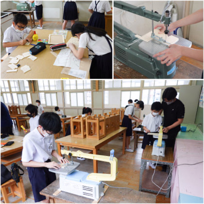 板材を使った「パズル」を製作中の6年生。1時間目、図工室で1組の児童がパズルづくりに取り組んでいました。