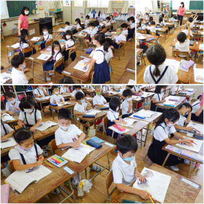 2時間目、国語の学習。「やまあらし」について書かれた説明文を読み深めていました。