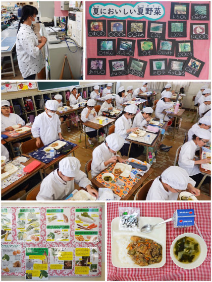 「本校職員室前の掲示板に、野菜についてのあれこれを掲示していますので、ぜひ見てください。野菜のことをもっと知ってくださいね。」