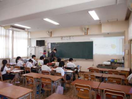 教室によっては、大型スクリーンに教材を拡大して掲示するなど、習熟度に合わせた授業を展開されていました。ふだんとはちがう先生や教室で、しっかりと学習に励んでくださいね!