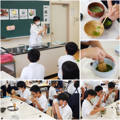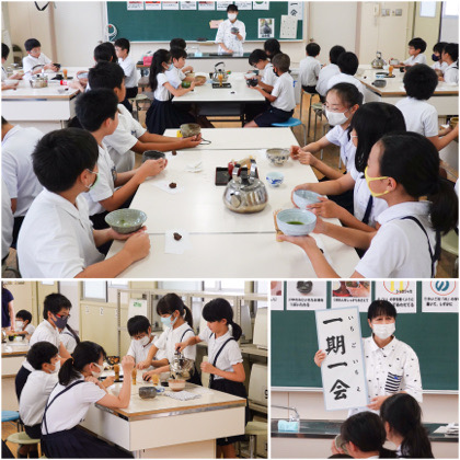3時間目、栄養教諭のM先生にお茶の作法を教えていただきました。