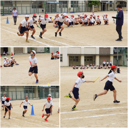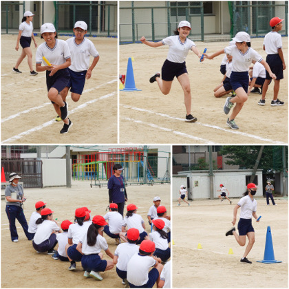 合計8チームを2グループに分けて、4チームでの競走。自分たちの走りがどうだったのか、前と比較できるように、走破タイムを計測し、バトンパスの様子を動画撮影していました。