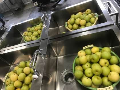 さて、もんだいです。常盤小学校では、全部で何個の梨が使われたでしょう?