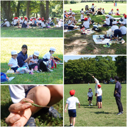 大芝生広場に移動して、お待ちかね、お弁当タイムです。さわやかな風を感じながら食べるお弁当は、最高においしい!