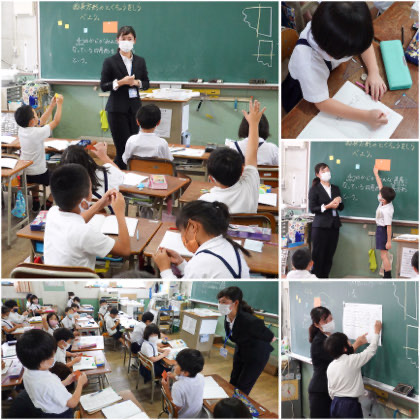 常盤小学校では、今、8人の大学生が教育実習を行っています。5日(月)と6日(火)の2日間は、実習生の研究授業が行われました。