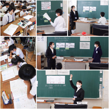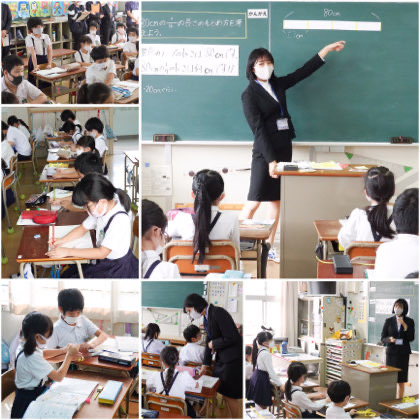 2時間目、3年6組では、F先生の授業。算数の「分数と倍の関係」について学んでいました。