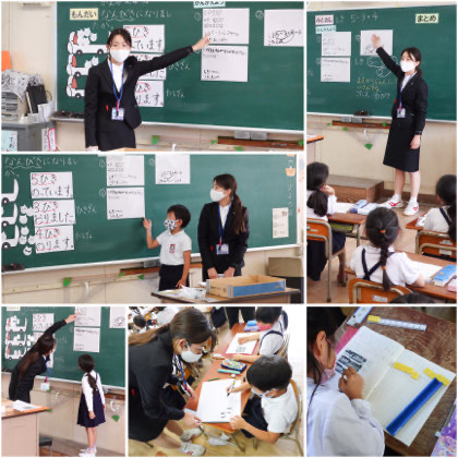 4時間目、1年3組では、A先生の授業。算数の「3つの数の計算(5−3+4)の仕方」を考えていました。
