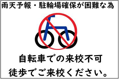〇雨天予報が出されており、屋根のある廊下は、就学時健康診断の動線となりますので駐輪場所の確保ができません。徒歩でのご来校をお願いします。